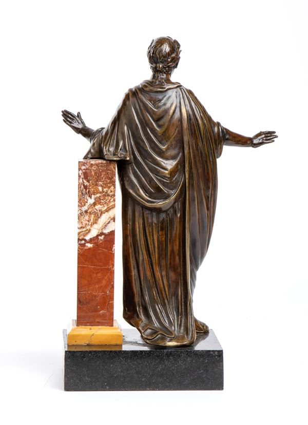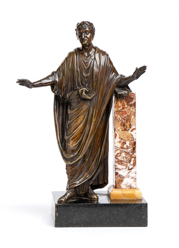 Bronzo raffigurante un oratore togato coronato di alloro, forse un poeta.