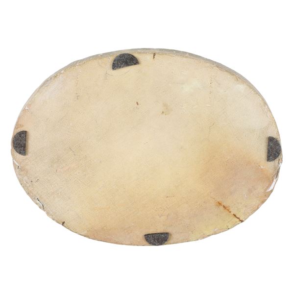 Dalla forma ovale convessa. Probabile decoro di credenza/boiserie.