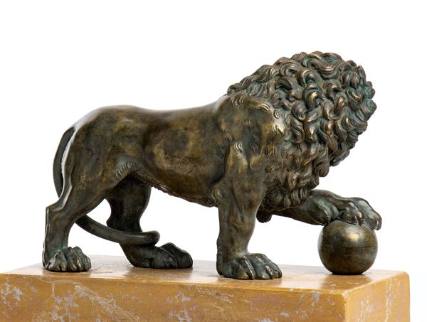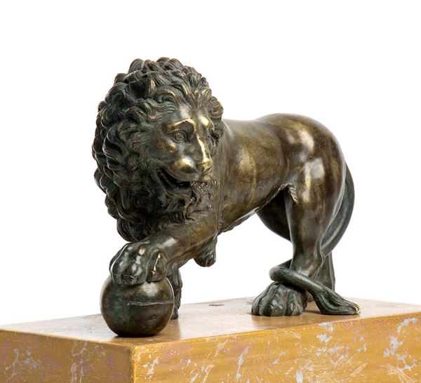 Il bronzetto qui presentato si riferisce alla scultura di Flaminio Vacca, ma non ne è una derivazione pedissequa in quanto la coda e le zampe sono posizionate diversamente. Copie del Grand Tour e successive di entrambi i soggetti sono facilmente reperibili sul mercato antiquario. Questo leoncino, invece, si ispira al soggetto rielaborandolo, presentando così un'originalità che lo colloca in un'epoca anteriore. Inoltre, la straordinaria finitura a cesello e la bella patina lo avvicinano a prodotti toscani di ispirazione giambolognesca.