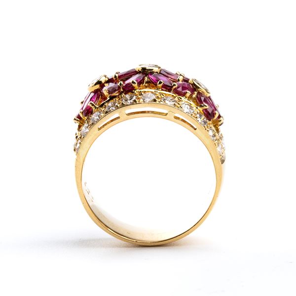Anello a fascia in oro con rubini e diamanti