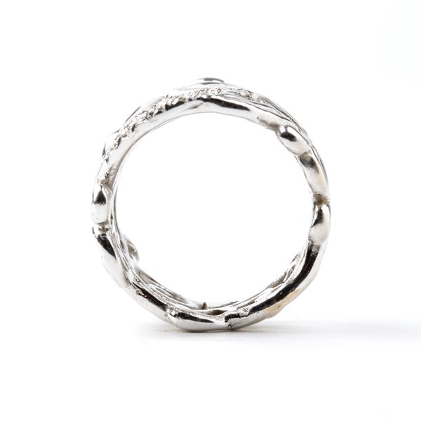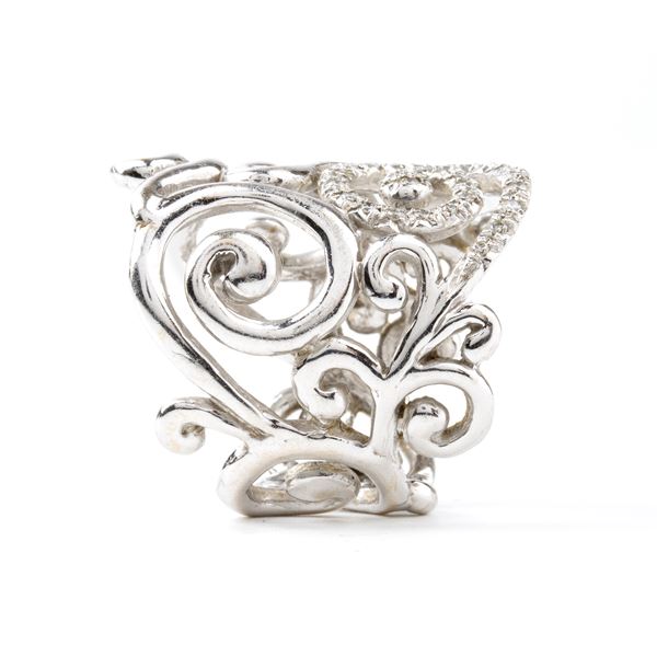 Anello a fascia traforata in oro bianco con diamanti
