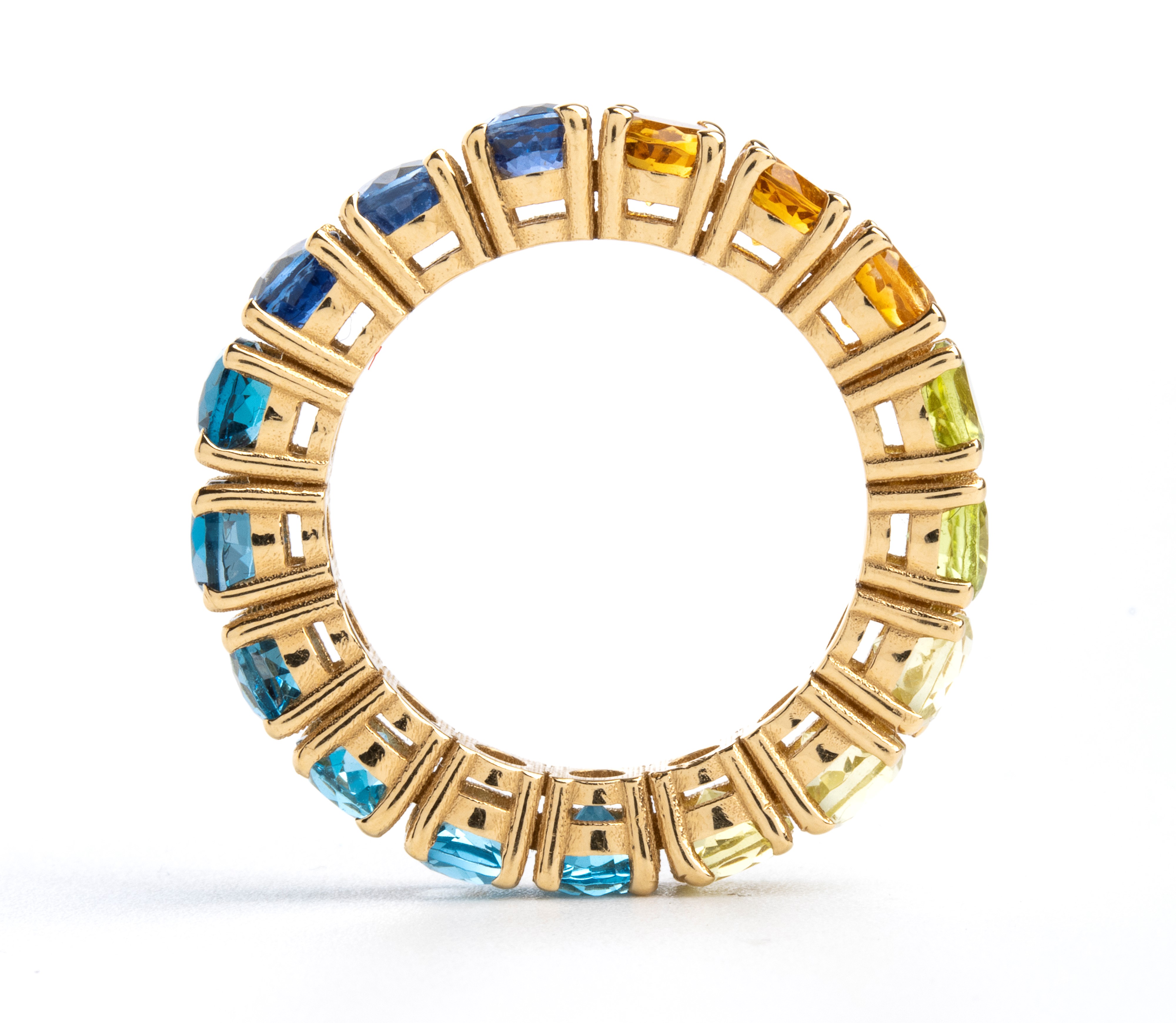 effetto arcobaleno grazie all'utilizzo di corindoni di diversi colori.