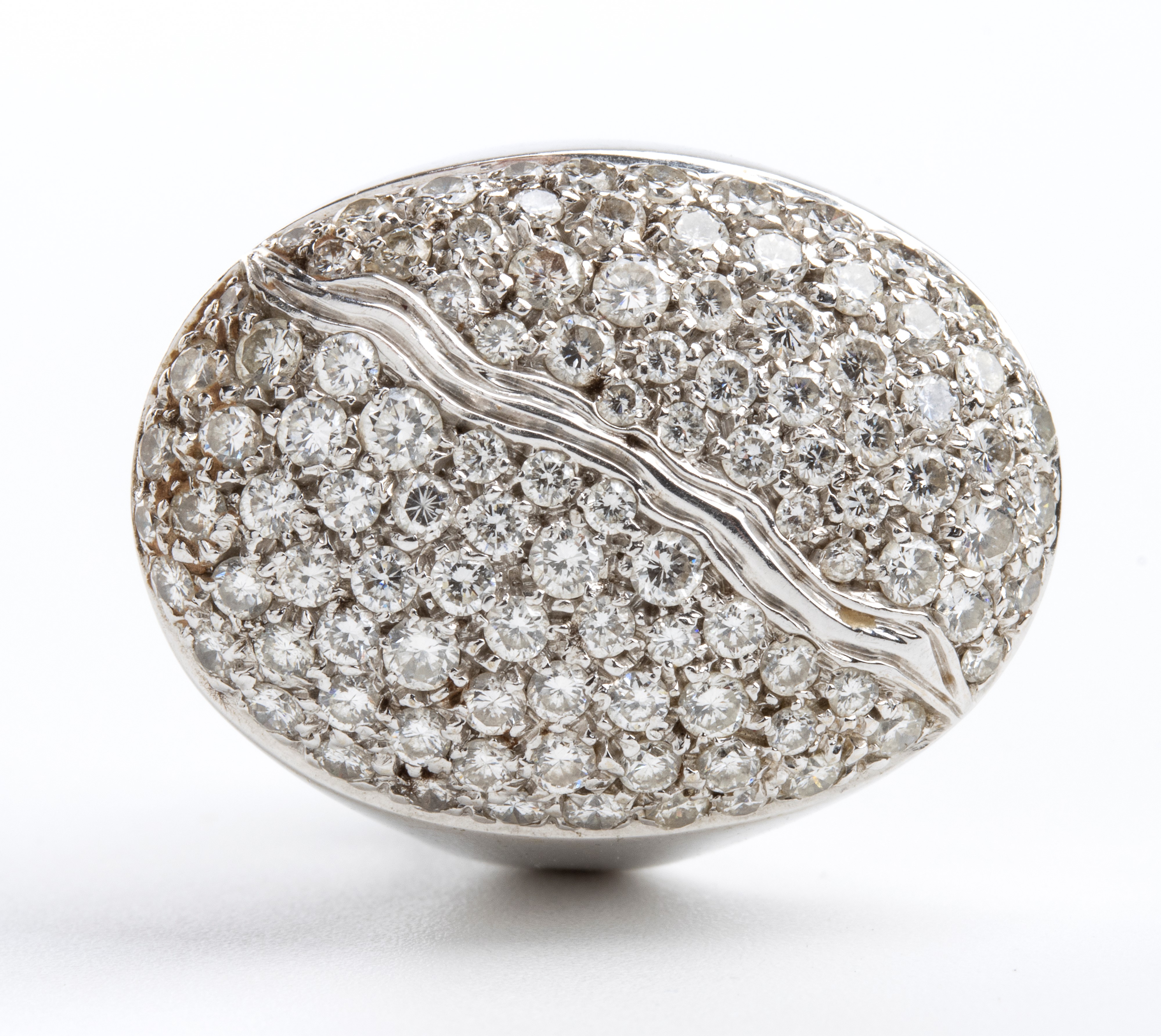 modellato come una fascia in oro bianco 18k, con motivo geometrico in pavé di diamanti.