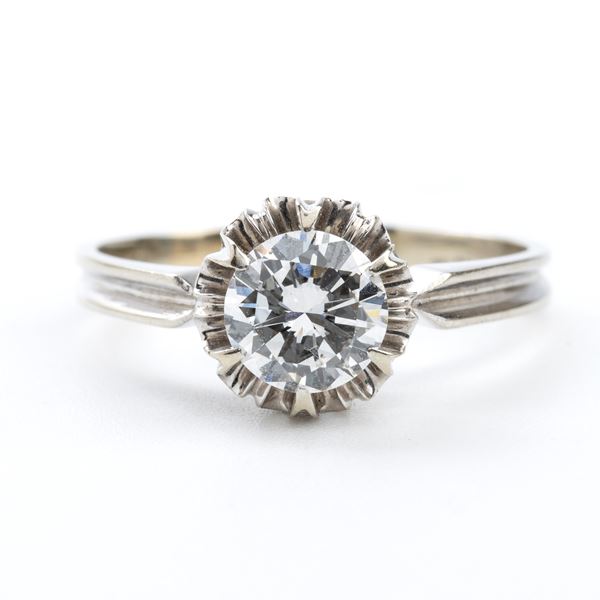 in oro bianco 18k, incastonato con diamante rotondo, taglio brillante, circa 0.76 ct, H-I, VS.