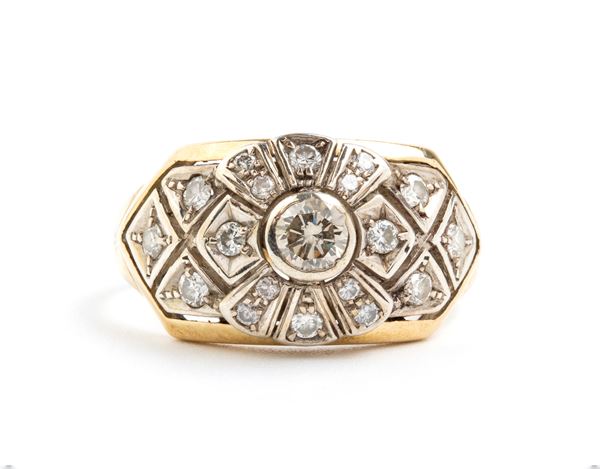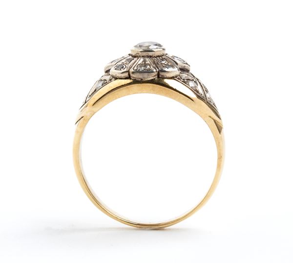 con motivo floreale in diamanti rotondi, taglio brillante,  circa 0.40 ct, H.I, VS-SI.