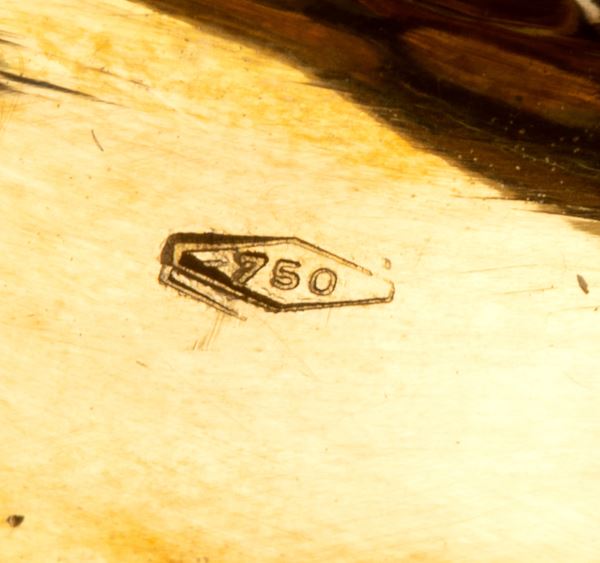 Punzonato "750". Misura ITA 28 - Misura USA 12 1/2. Dimensione fronte: 2,7 x 2,2 cm. Peso: 27,7 gr.