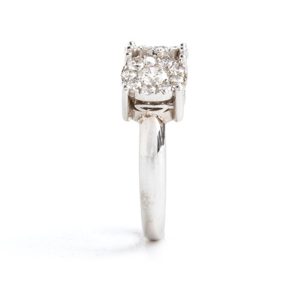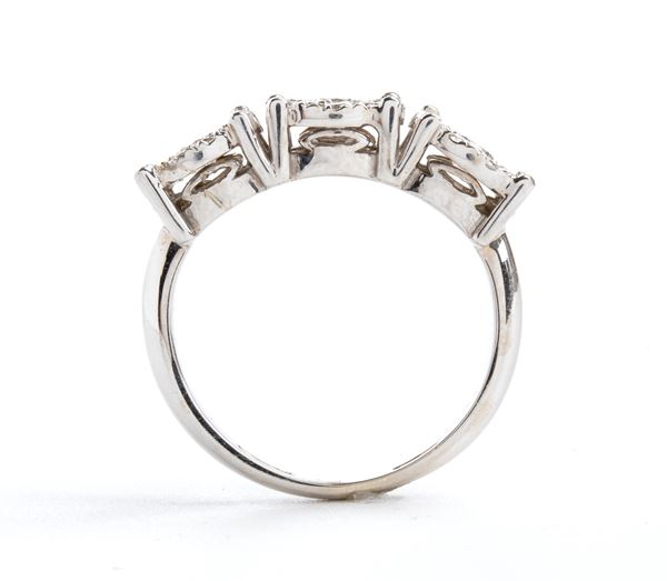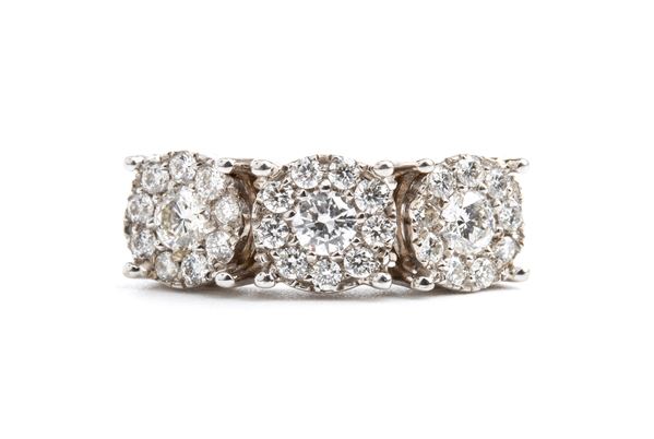 in oro bianco 18k, con tre motivi a fiore in pavé di diamanti.