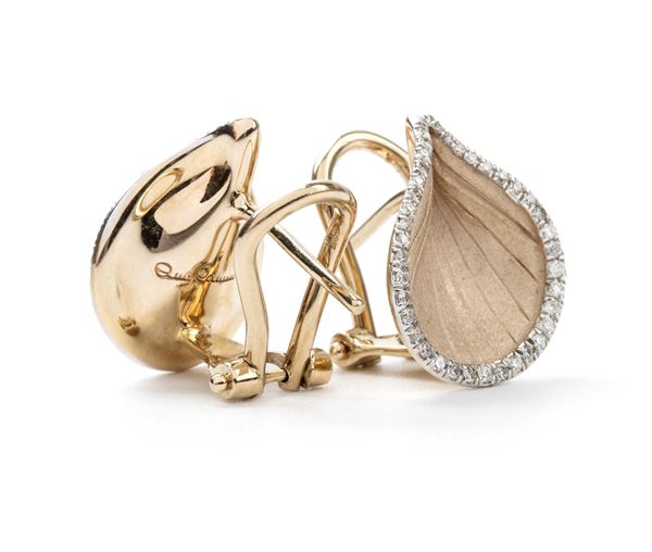 in due colori d'oro 18k, superficie concava con finitura satinata e filettata tra cornice di diamanti taglio brillante per circa 0.40 ct totali. Firmata "Ann. Cammilli".