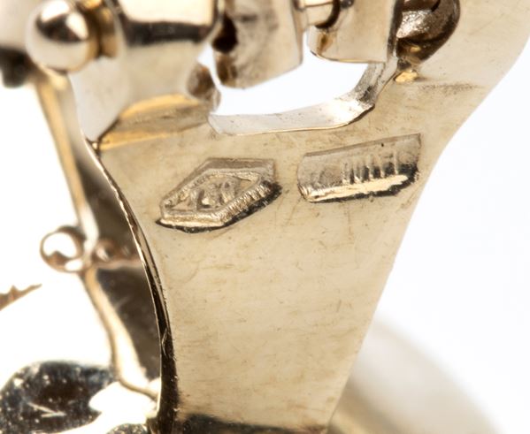 Punzonato "750 - 901 FI". Dimensioni fronte: 1.5 x 1.1 cm. Peso: 4.8 gr.