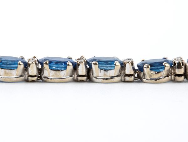 in oro bianco 18k, incastonato con linea di zaffiri separati da zaffiri.