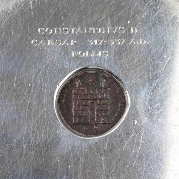 di forma circolare, incastonato con un Follis di COSTANTINO II, CAESAR, 317-337 A. D.