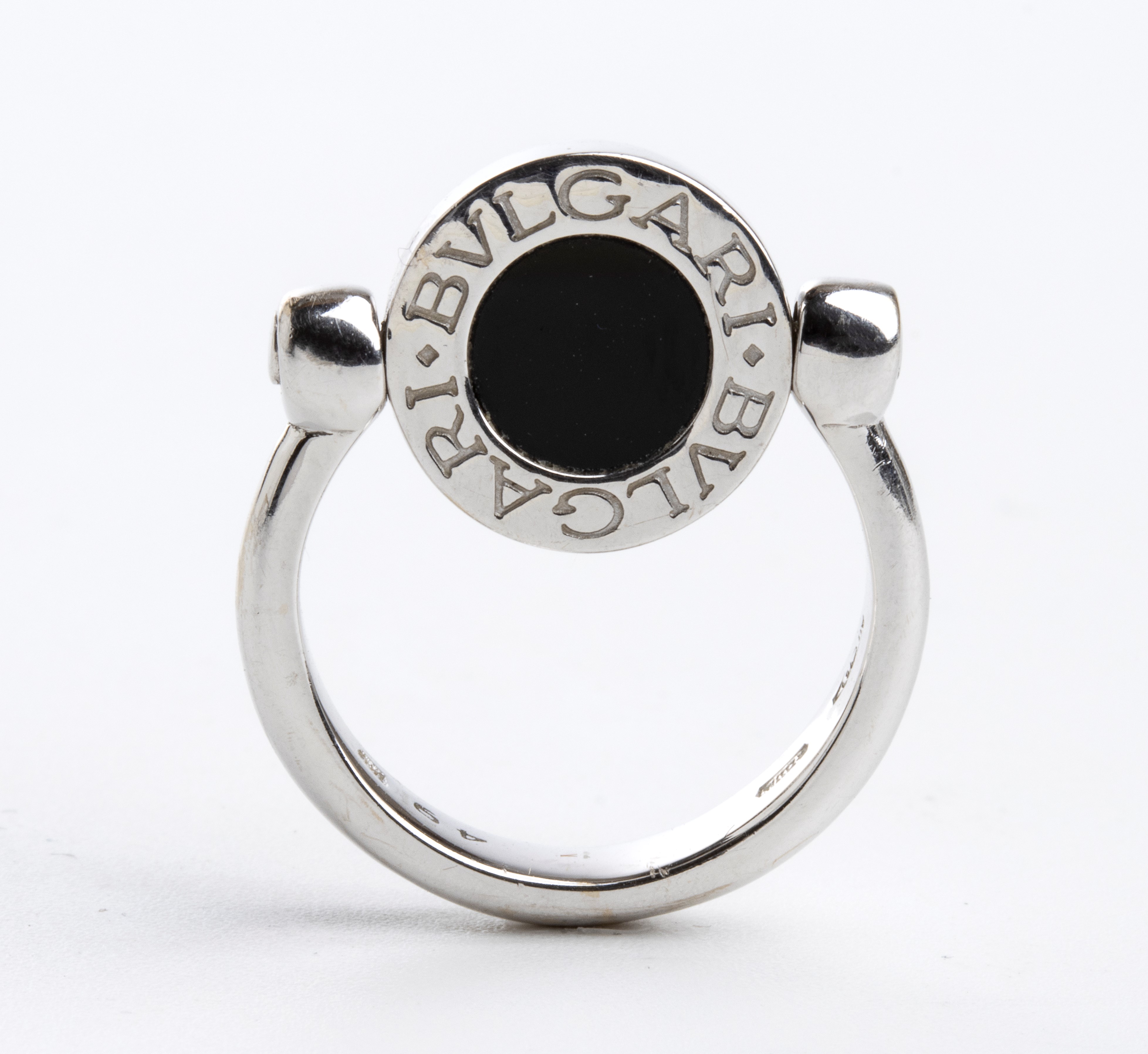 Collezione BVLGARI-BVLGARI: anello girevole in oro diamanti ed onice