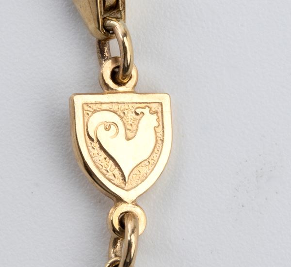 con catena a maglia forzatina in oro giallo 9k. Presenta il logo di Chantecler.