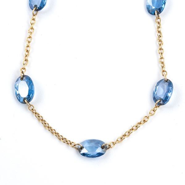 catena a maglia forzatina in oro bianco 18k, impreziosita da n. 30 zaffiri.