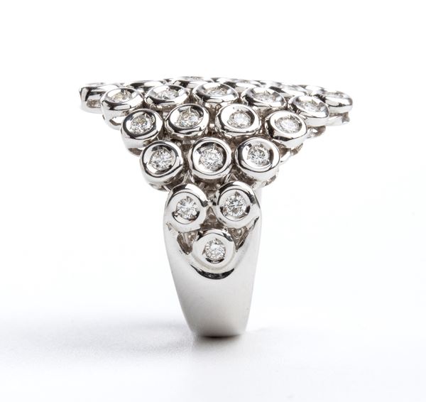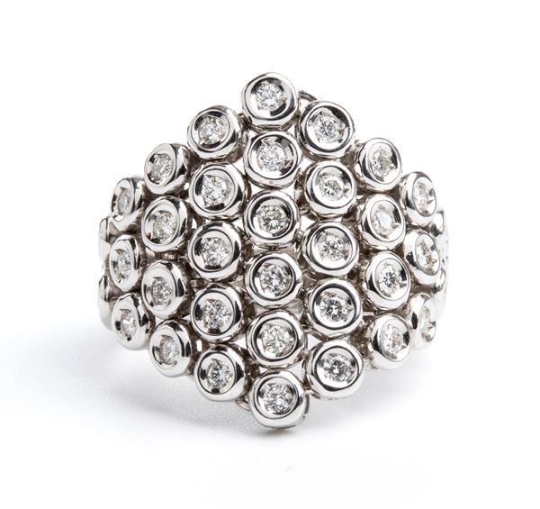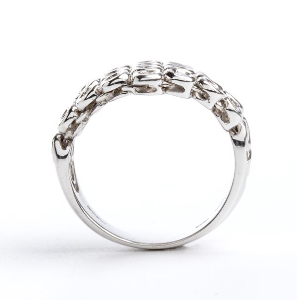 Punzonato "750 - DAMIANI - 3181 AL". Misura ITA 17 - Misura USA 7. Dimensione fronte: 2,3 x 2,1 cm. Peso: 9,9 gr.
