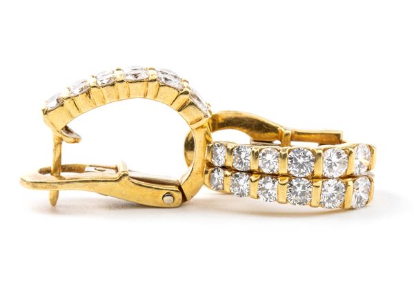 oro giallo 18k. Incastonati con n. 42 diamanti di forma rotonda, taglio brillante e huit-huit, per circa 1.80 ct totali, G-H, VVS-VS.