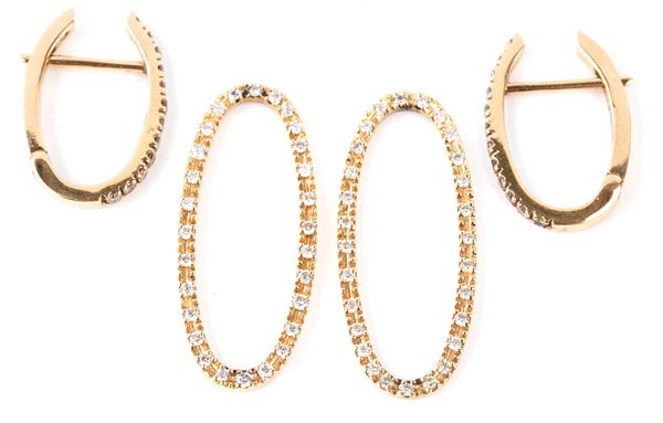 Paio di orecchini componibili in oro con diamanti, madreperla ed onice