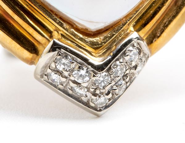 in oro giallo e bianco 18k, ciascuno perle mabè a forma di cuore, dettagli in brillanti.