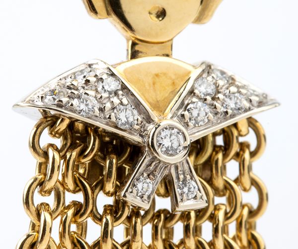 Pendente Marinaio snodato in oro con fiocco in diamanti, Anni '80 - '90