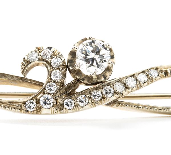 Spilla a barretta in oro argento e diamanti