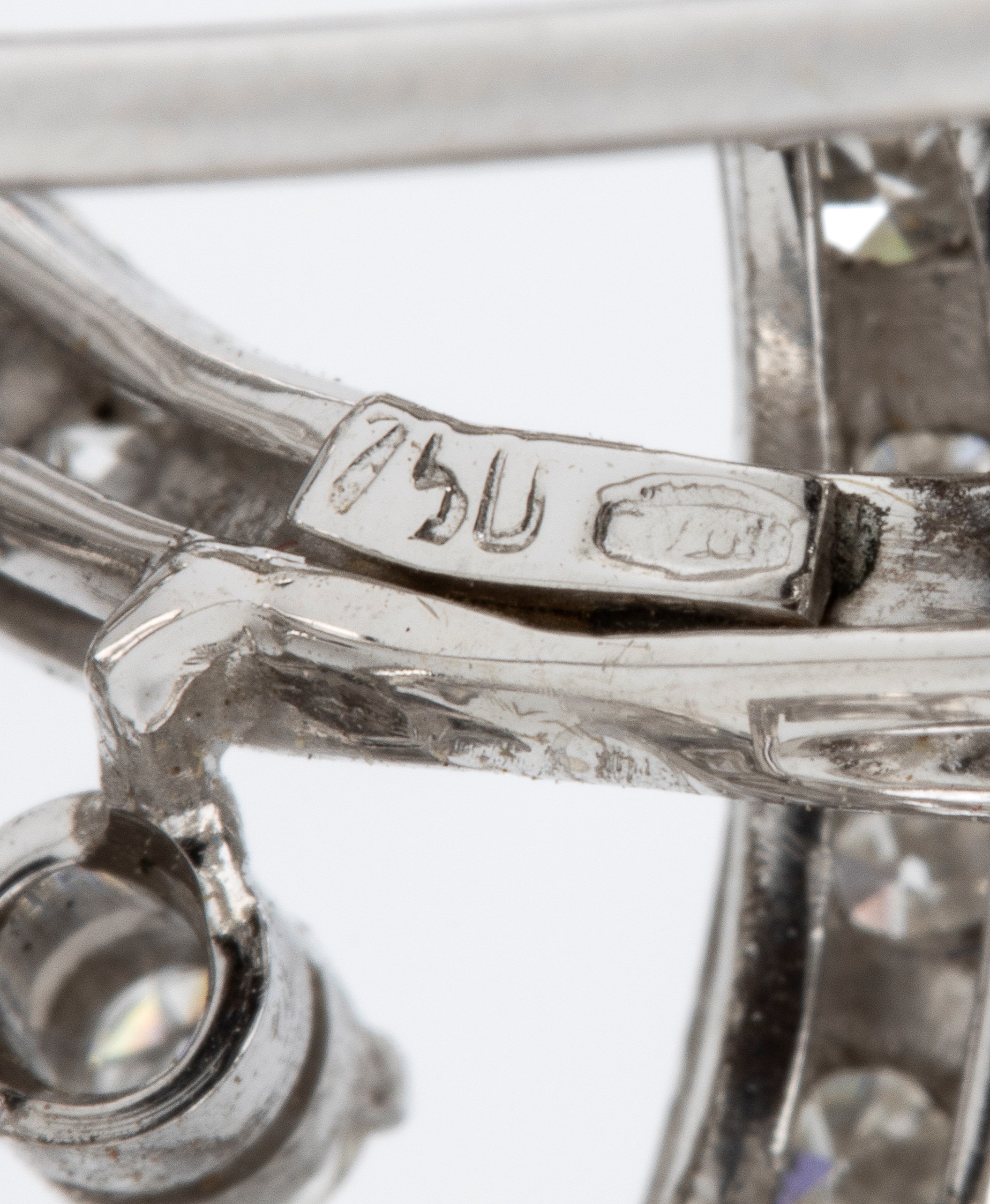 in oro bianco 18k, motivo di steli e nastri in diamanti rotondi, taglio brillante e huit-huit per circa 1.90 ct, F-G, VS-SI.