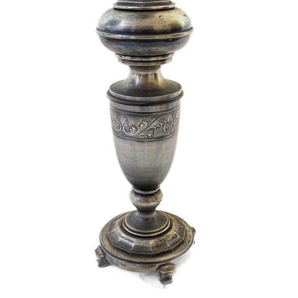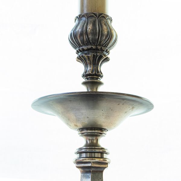 Candeliere in bronzo argentato, metà XX secolo
