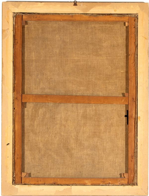 Condizioni: dipinto rifoderato, piccolo taglio sul fondo in basso lateralmente.