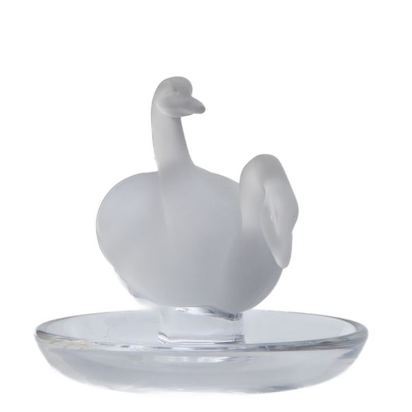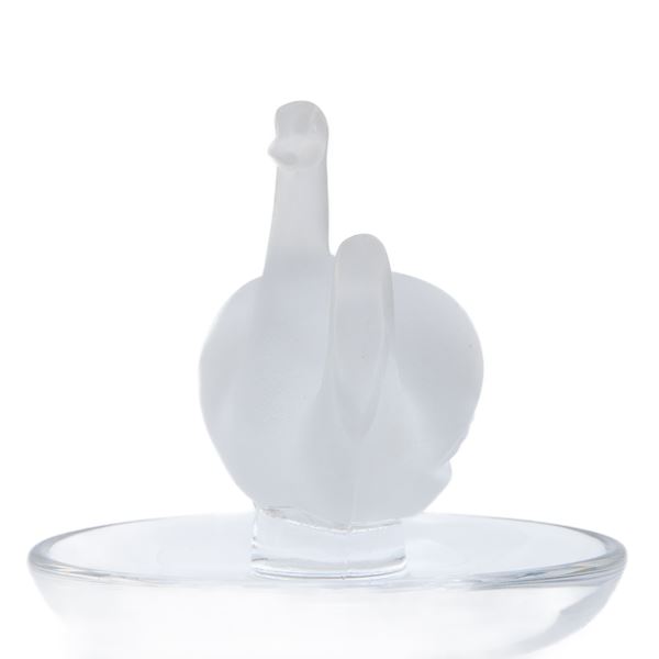 Coppia di cigni, scultura in cristallo Lalique, seconda metà XX secolo