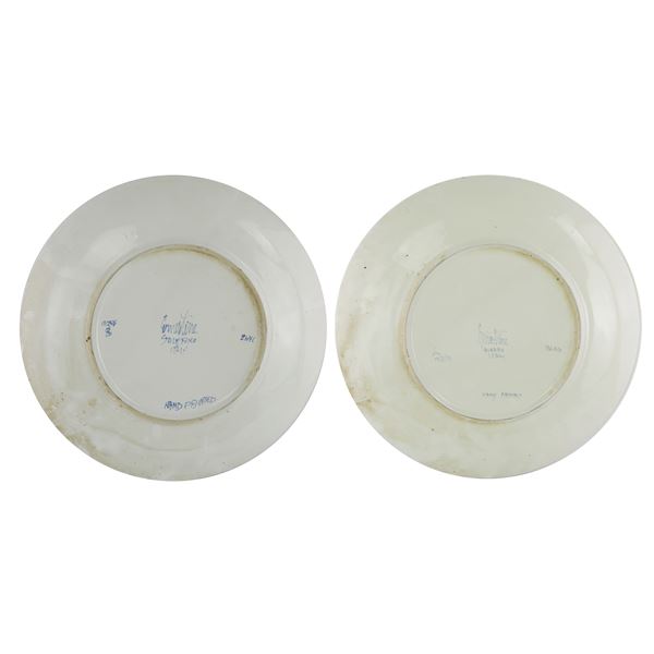 Coppia di piatti in ceramica bianca con decoro floreale, anni '60