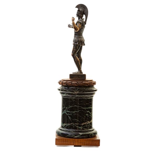 Guerriero con armatura ed elmo all'antica in metallo argentato, Prima metà XX secolo