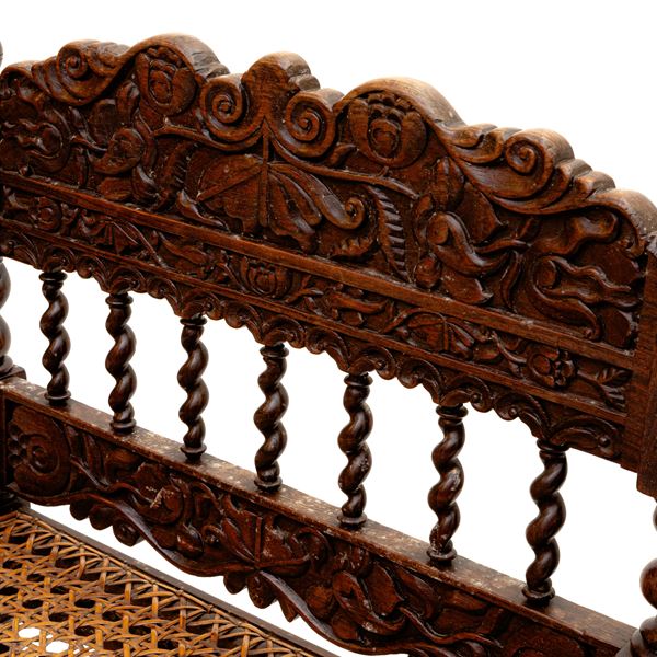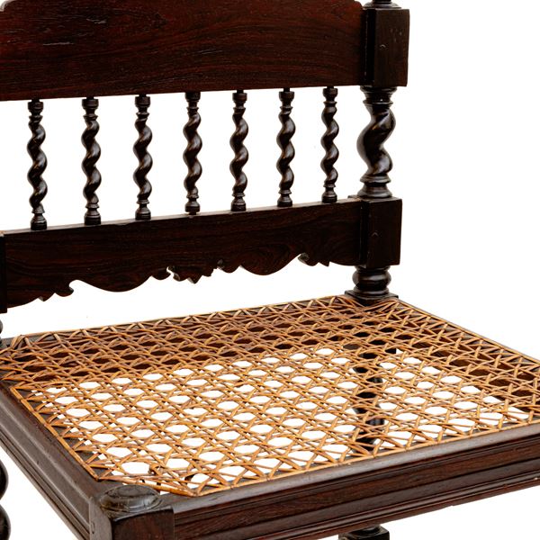 di forma rettangolare con seduta in paglia di Vienna con gambe tortili raccordate alla base.