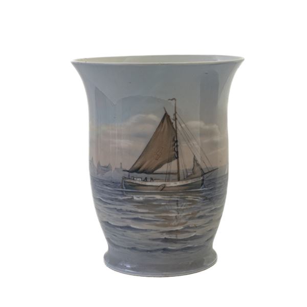 a scene di paesaggio marino con barche e città portuali. Manifattura Royal Copenaghen e manifattura Bing & Grondahl