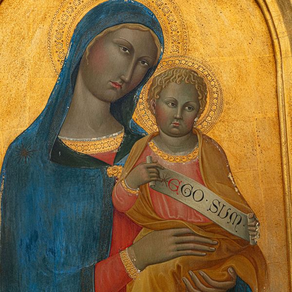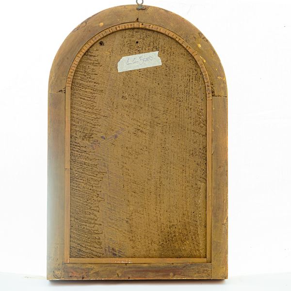 in policromia su fondo oro, ripresa dalla tradizione del '300 italiano entro cornice dorata