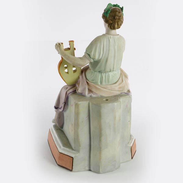 scultura in volume in porcellana policroma su base ottagonale in bisquit.