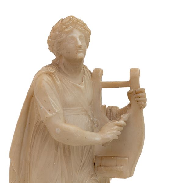 Suonatrice di arpa, scultura a tutto tondo in marmo bianco, fine XIX secolo inizi XX secolo