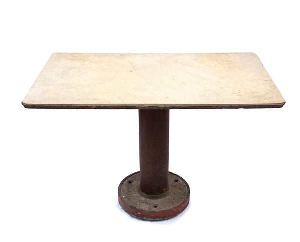Tavolini da demolizione di cantiere navale; 2 tavoli rettangolari ed uno circolare da sala casinò;