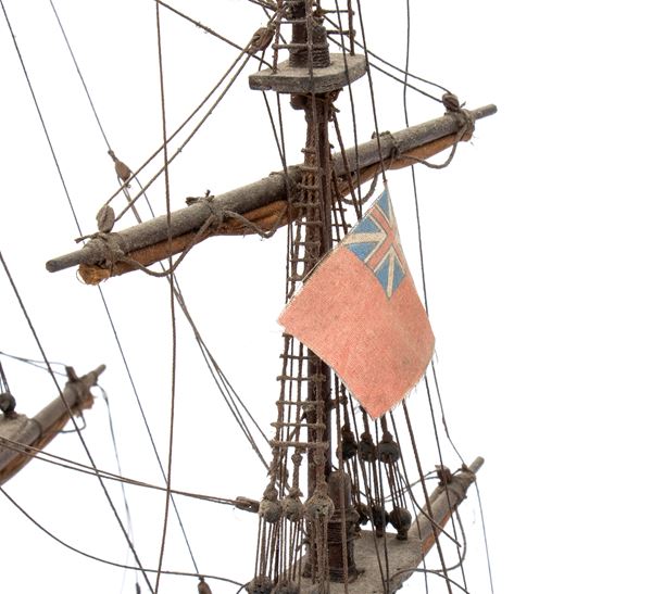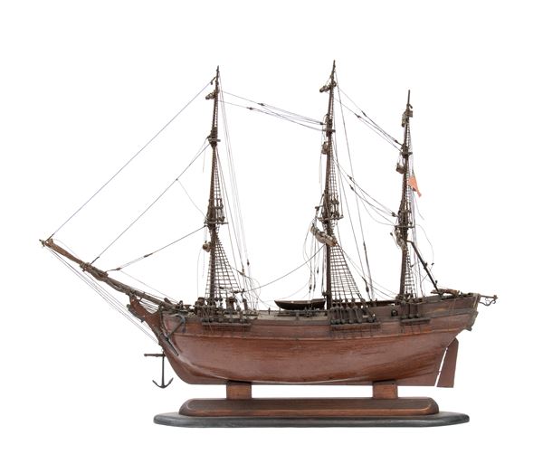 Modellino di Veliero in legno a tre alberi; completo in tutte le sue parti. Buone condizioni.