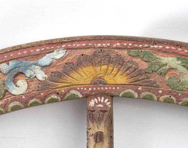 In legno, dipinta a mano con scene allegoriche di flora e fauna. Buone condizioni