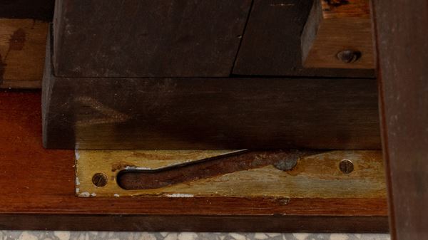 In mogano con bordo sollevabile per il beccheggio; Ripiano a scacchiera.