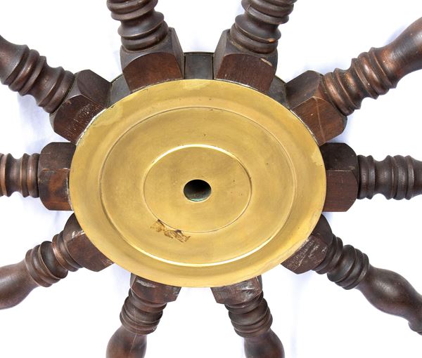 Timone navale a dieci raggi; parte centrale in ottone. Ottime condizioni.
