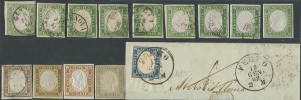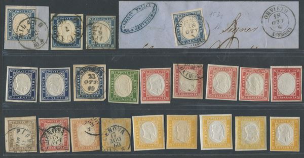 Lotto composto da francobolli sciolti usati e nuovi, 5 lettere ed un frontespizio. Qualità media buona, tre certificati.