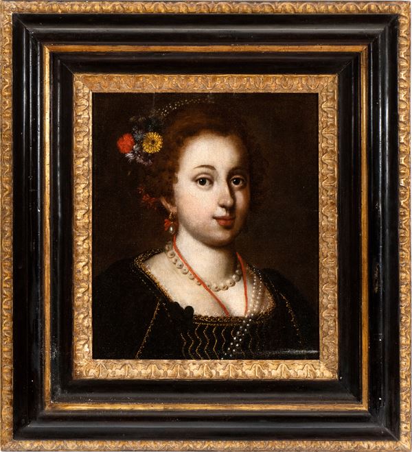 Ritratto di giovinetta con perle e fiori tra i capelli