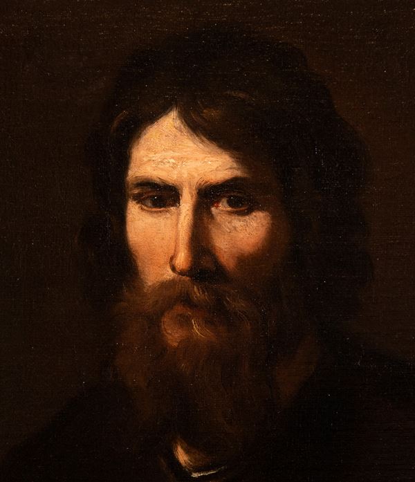 Lungo tutto l’arco della sua attività Ribera ebbe una particolare predilezione per la raffigurazione di figure di apostoli, santi, profeti e filosofi, per lo più a mezzo busto. All’interno di questa ideale galleria di esempi di virtù, spiccano le molteplici effigi dell’apostolo Giacomo il Maggiore, fra loro variate per taglio compositivo, postura del protagonista e misure. Nella potente immagine che qui si presenta, pubblicata da Nicola Spinosa in tutte le edizioni della sua monografia su Ribera, l’identificazione del santo risulta inequivocabile per via della presenza di tutti i suoi attributi principali: il libro che allude al vangelo, nonché il bastone e la conchiglia sul mantello, elementi distintivi del pellegrino. Colpisce l’aspetto giovanile e vigoroso dell’apostolo, che viene contrappuntato dalla sua espressione assorta e meditativa, con lo sguardo rivolto davanti a sé, idealmente verso lo spettatore, ma in effetti rapito da vaghi pensieri e quasi malinconico, come a prefigurarsi il destino che lo attende di primo apostolo martirizzato, decapitato nell’anno 44 a Gerusalemme. La fisionomia del protagonista s’inserisce in modo ben riconoscibile nel repertorio riberesco di volti di santi, tra cui, limitandoci alle effigi di Giacomo Maggiore, vale la pena di segnalare le versioni del Museo de Bellas Artes di Siviglia, del Musée des Beaux-Arts di Marsiglia e soprattutto quella già presso Colnaghi a Londra, che sotto ogni profilo costituisce il più prossimo termine di confronto per la nostra tela. Con quest’ultimo dipinto il nostro condivide l’impianto della composizione, sostituendo però il cartiglio con i versetti del Credo col ponderoso volume che spicca sulla sinistra della presente tela e conferendo maggiore risalto alla conchiglia fissata sul mantello. A differenza del dipinto già Colnaghi, nella tela qui in oggetto Ribera opta per una paletta cromatica tutta giocata su tonalità brunite, che corrisponde perfettamente al registro espressivo che caratterizza l’immagine: concentrato, intimo e pensoso.