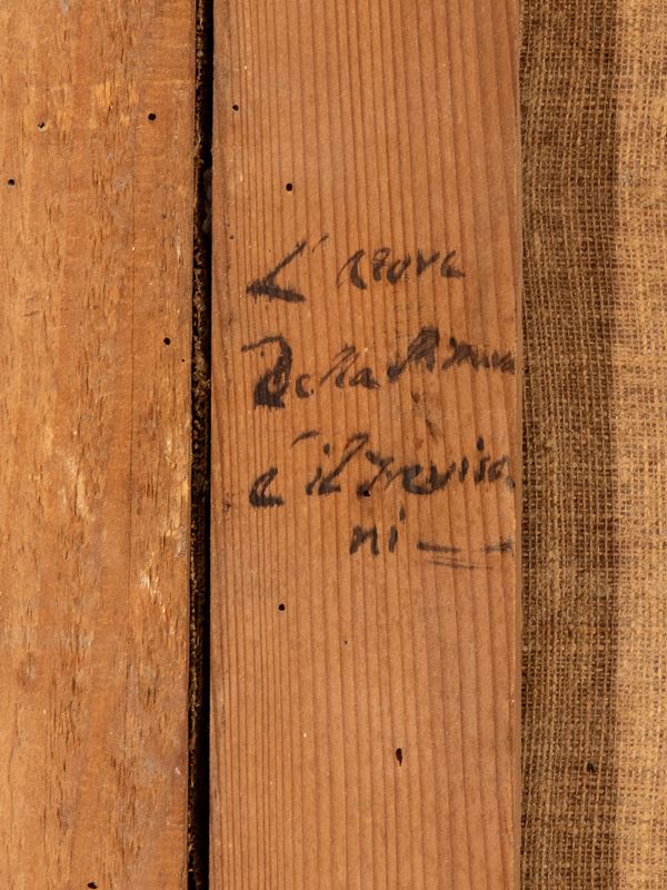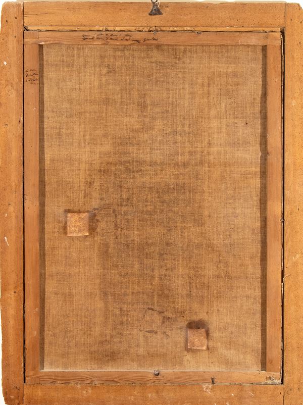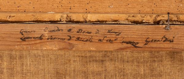 Il dipinto è in prima tela e reca iscrizione a pennello sul telaio originale: "QUESTO QUADRO E' DONO DI MONSIG. LEONARDI VESCOVO DI ASCOLI AL [...] LORENZO GERALDINI".