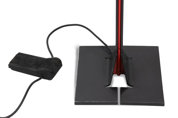 Struttura in metallo laccato nero e rosso e luce di copertura in vetro goffrato.Afra Bianchin (1937-2011) e suo marito Tobia Scarpa (1935-) sono una famosa coppia di architetti e designer italiani. I loro prodotti si trovano in molti musei di tutto il mondo, tra cui il MoMa e il Louvre. Sono stati autori di importanti progetti di restauro e dal 1966 hanno curato l'arredamento dei negozi di note aziende italiane tra cui Benetton, C&B, Geox e Unifor, Knoll, B&B Italia. Hanno vinto numerosi premi come il Compasso d'Oro nel 1969 e l'International Forum Design nel 1992. Il loro lavoro di design consiste nell'architettura e negli oggetti di uso quotidiano, tra cui mobili, abbigliamento e vetro artistico.