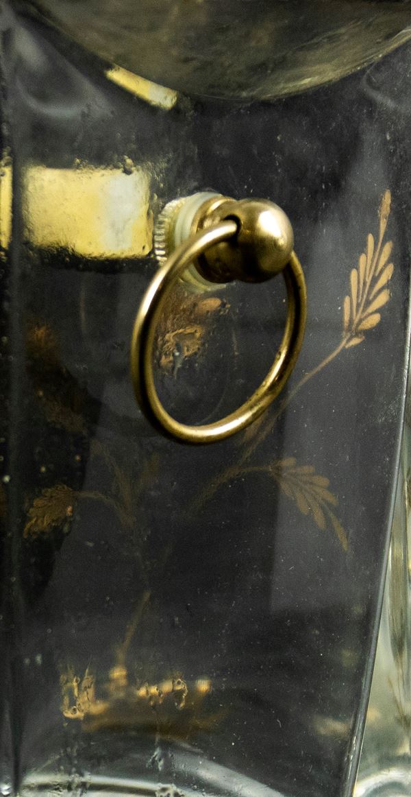 Contenitore per ghiaccio d'epoca in vetro e ottone