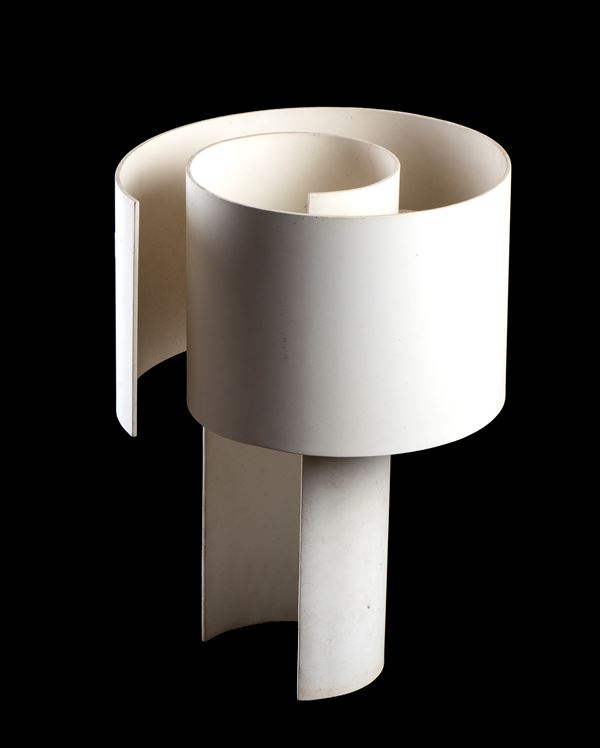 Lampada in metallo bianco a spirale disegnata da Angelo Mangiarotti per Brambilla. Riedizione degli anni '80.
