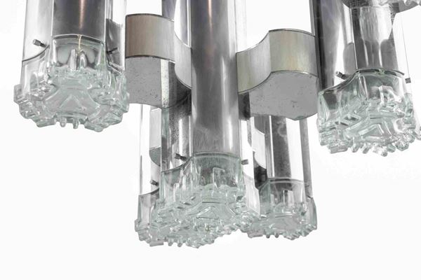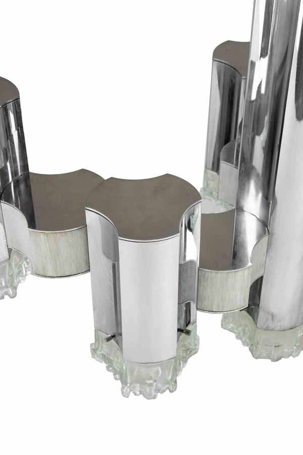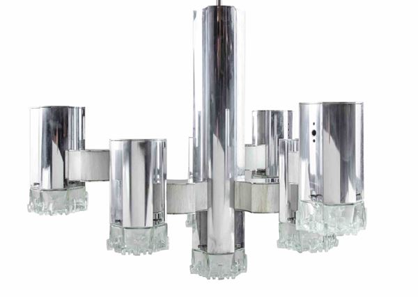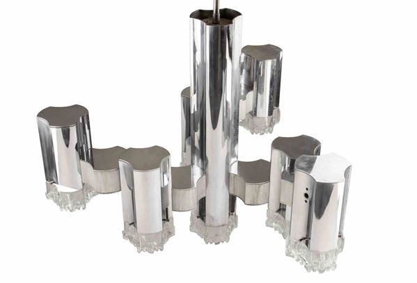 Lampadario “modernista” attribuito a Gaetano Sciolari e realizzato negli anni Settanta.