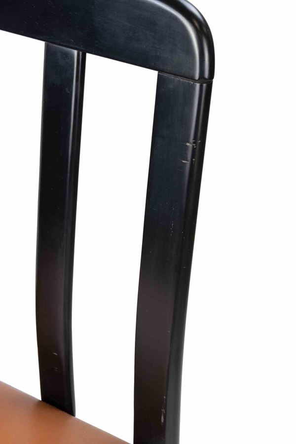 Legno laccato, pelle.