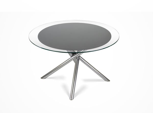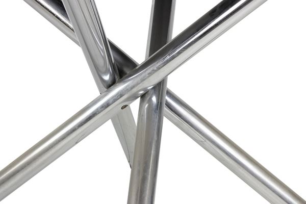 Tavolo ovale con gambe in metallo cromato e piano in cristallo tagliato